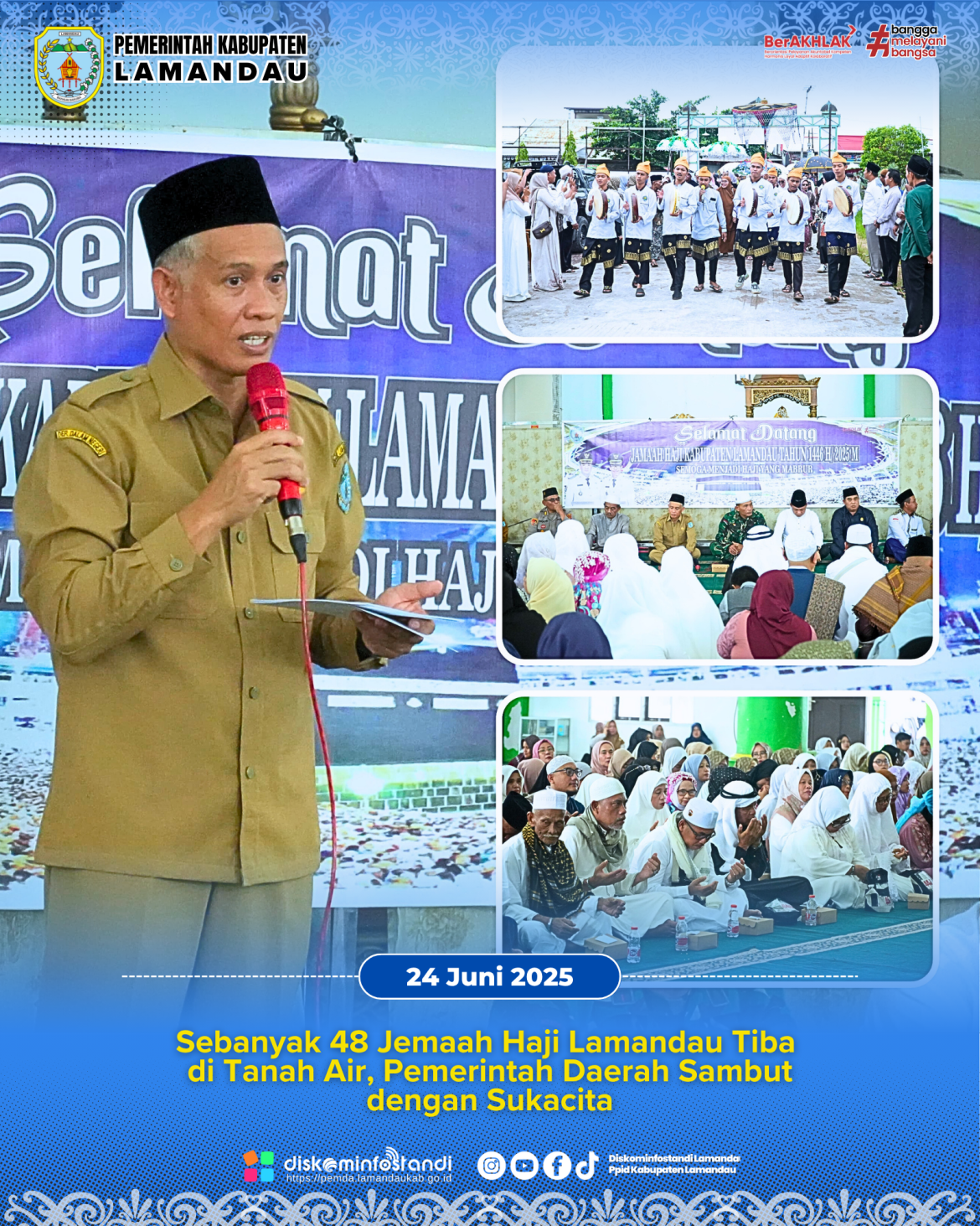 “Atas nama pribadi dan Pemerintah Kabupaten Lamandau, kami mengucapkan selamat datang kembali kepada para jemaah haji, alhamdulillah, bapak dan ibu semua telah diberi kekuatan dan kesehatan untuk menjalankan ibadah haji serta kembali dengan selamat. Ini merupakan nikmat luar biasa yang patut kita syukuri bersama,” ujarnya.