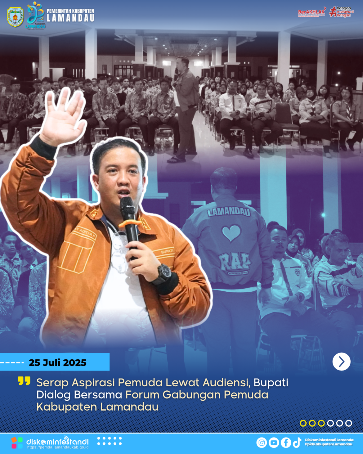Di tempat yang sama, Plt. Kepala Dispora Medika Hermawan menjelaskan bahwa audiensi rutin ini menjadi sarana untuk menampung masukan, ide, dan aspirasi generasi muda, “Selain menyampaikan aspirasi, forum ini juga menjadi wadah mempererat tali silaturahmi antara pemuda dengan pemerintah daerah,” ujarnya. (Diskominfostandi)