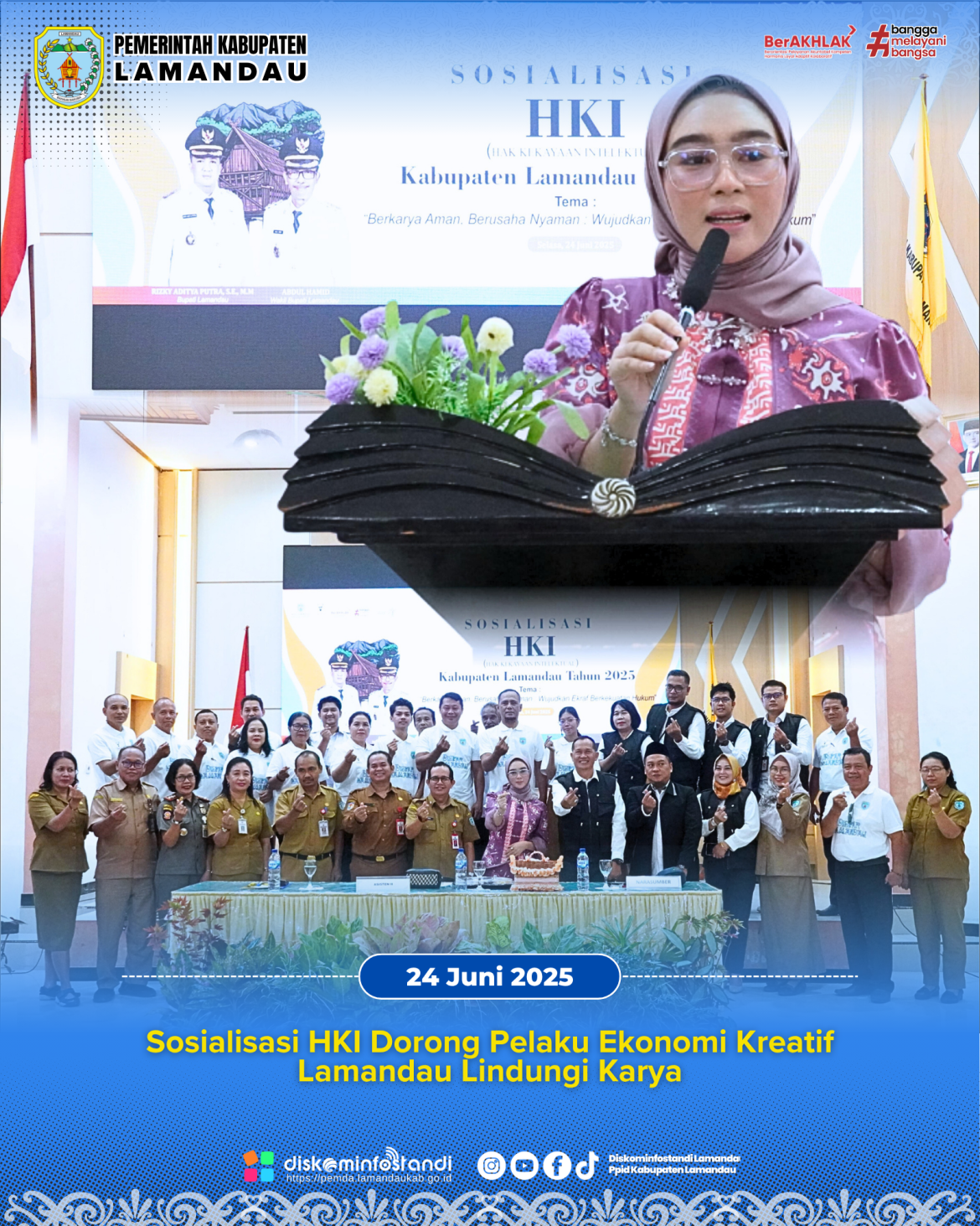 “Kabupaten Lamandau memiliki potensi besar di bidang ekonomi kreatif, mulai dari kriya, seni pertunjukan, kuliner, fotografi, hingga fashion, jika dilindungi dengan HKI, maka karya-karya ini akan memiliki daya saing lebih tinggi dan memberi manfaat ekonomi optimal,” lanjut Bupati dalam sambutan yang dibacakan oleh Asisten II Setda Lamandau.