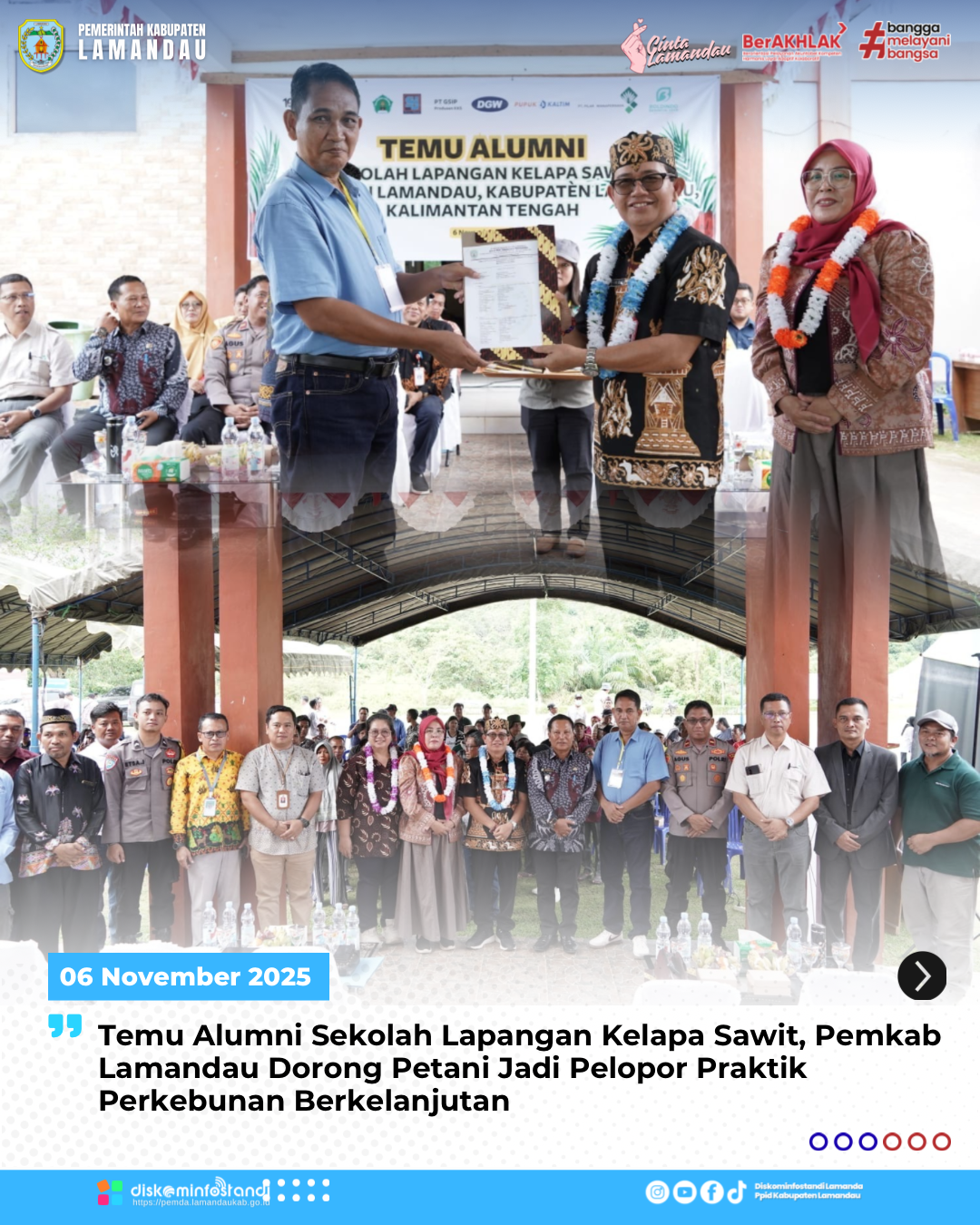 Lebih lanjut, disampaikan bahwa Pemkab Lamandau berkomitmen memperkuat sinergi dengan seluruh pemangku kepentingan, termasuk petani, penyuluh, perusahaan perkebunan, serta lembaga pendamping lainnya. Penguatan sumber daya manusia pertanian disebut menjadi prioritas utama, mengingat sektor kelapa sawit merupakan salah satu pilar penting perekonomian daerah.