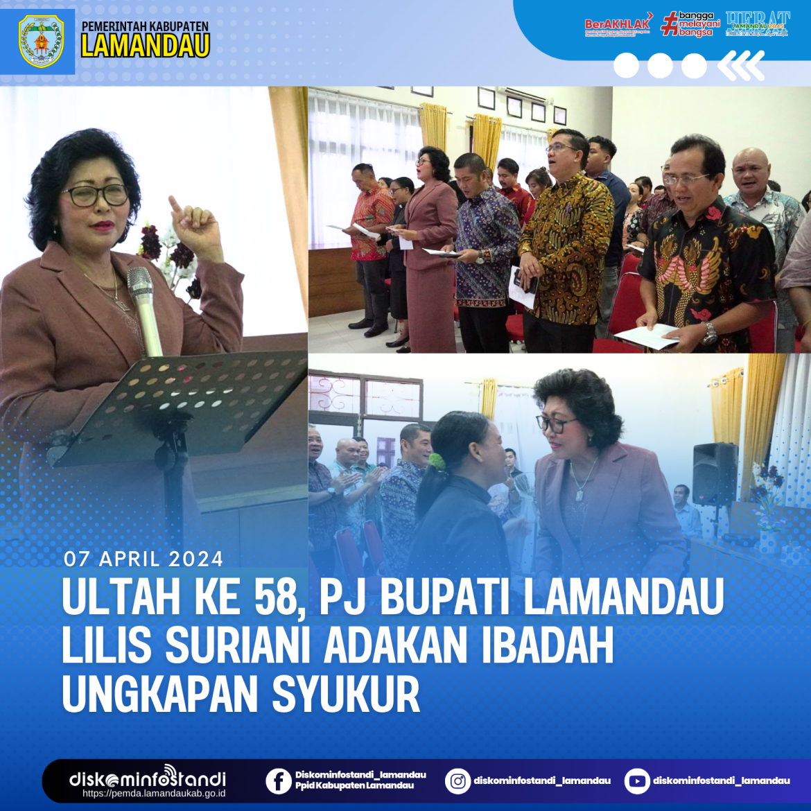 Nanga Bulik – Memasuki usia ke 58 tahun pada jumat 5 april kemarin, Pj Bupati Lamandau Lilis Suriani mengadakan doa dan ibadah ungkapan syukur, di Rumah Jabatan Bupati Lamandau, Minggu (7/4).