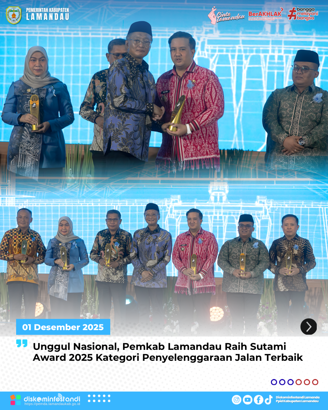Jakarta – Pemerintah Kabupaten Lamandau meraih Sutami Award 2025 pada kategori Penyelenggaraan Jalan Terbaik Tingkat Kabupaten dalam rangkaian peringatan Hari Bakti Pekerjaan Umum ke-80, Senin (1/12).