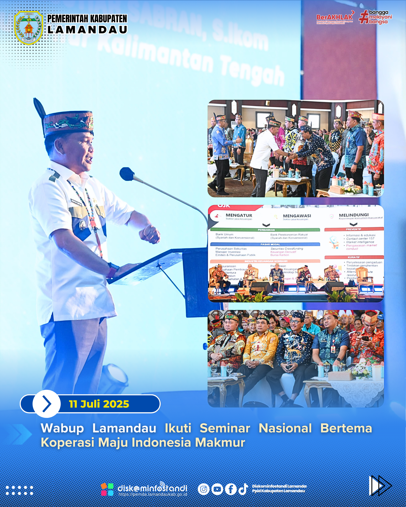 Palangka Raya – Masih dalam rangkaian peringatan Hari Koperasi Nasional (Harkopnas) ke-78, Wakil Bupati Lamandau, Abdul Hamid, menghadiri Seminar Nasional yang digelar di Aula Jayang Tingang, Kantor Gubernur Kalteng, Jumat (11/07/2025).