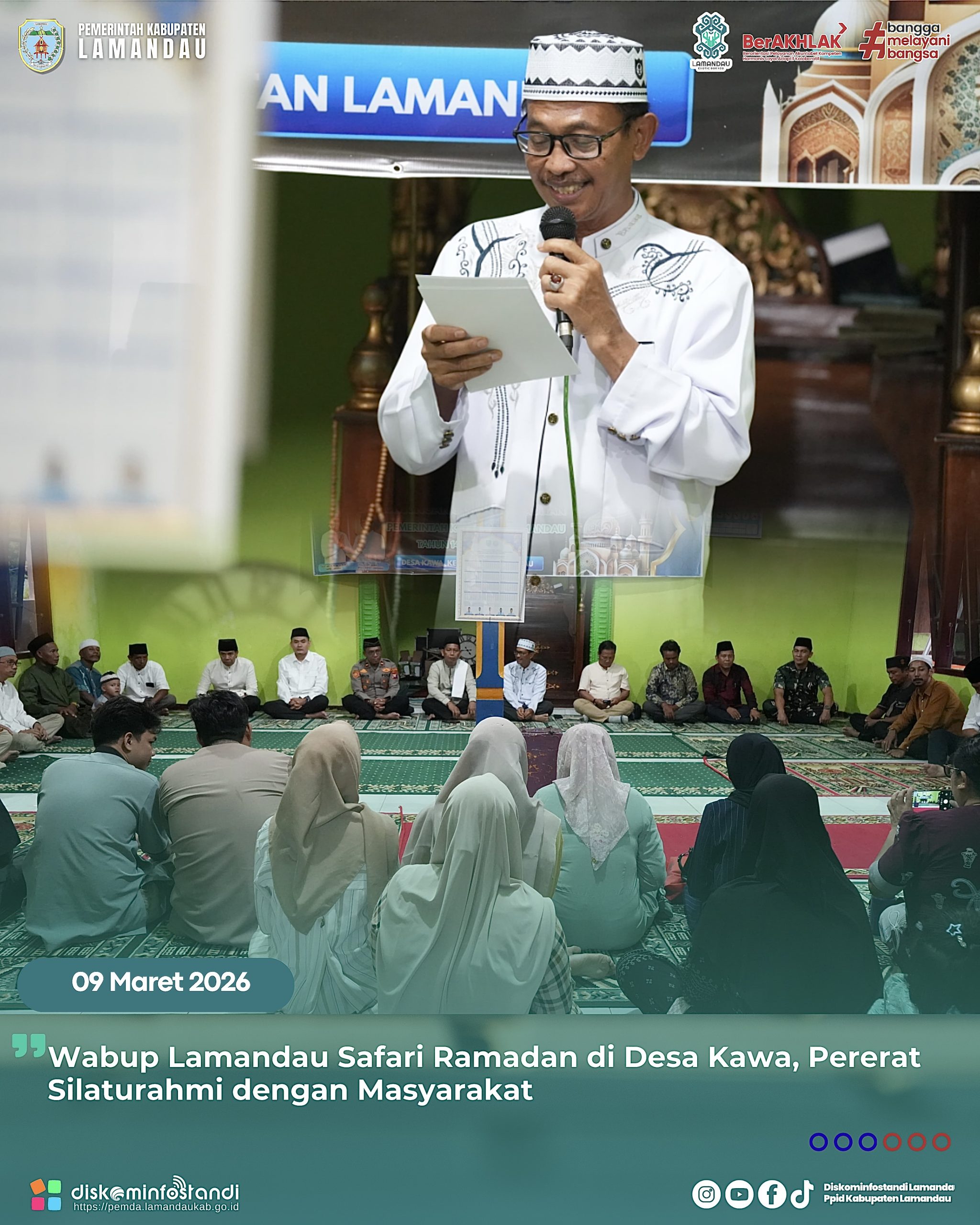 “Kegiatan Safari Ramadan ini merupakan salah satu upaya Pemerintah Kabupaten Lamandau untuk mempererat silaturahmi dengan masyarakat. Kehadiran kami di Kecamatan Lamandau bukan hanya sebagai agenda rutin, tetapi juga sebagai wujud kebersamaan antara pemerintah dan masyarakat dalam membangun daerah yang kita cintai,” ujar Wabup.