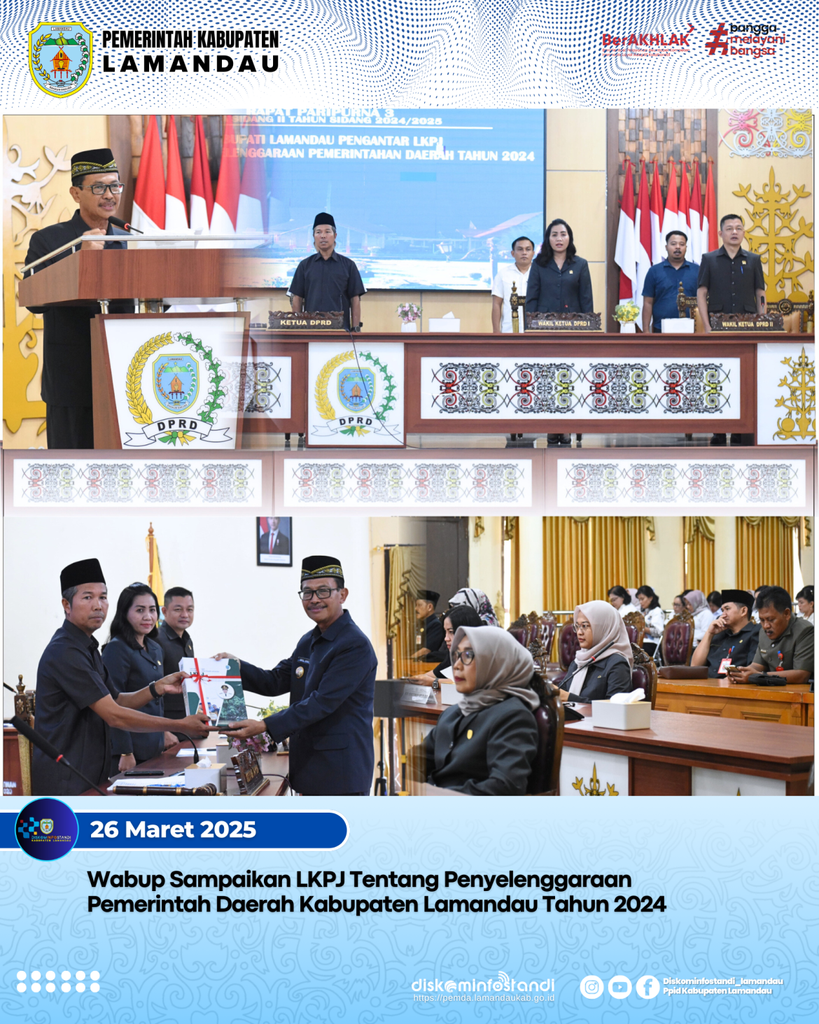 “Ini sebagai bentuk pertanggungjawaban atas penyelenggaraan urusan pemerintahan yang dilaksanakan oleh pemerintah daerah kabupaten Lamandau. Secara umum semua sudah berjalan dengan baik, sesuai dengan aturan. Dan kedepan dibawah kepemimpinan kami, semoga lebih baik lagi”, kata Wabup Sementara itu, Ketua DPRD Lamandau, Herianto dalam kesempatan tersebut memberikan harapan yang besar kepada Bupati dan wakil Bupati Lamandau yang baru saja di lantik Rizky Aditya Putra dan Abdul Hamid terhadap percepatan pembangunan dan sinergisitas eksekutif legislatif.