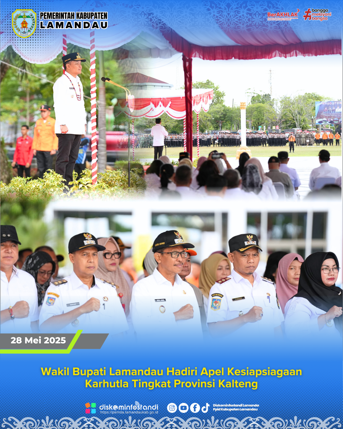 Palangka Raya – Wakil Bupati Lamandau, Abdul Hamid, didampingi Kepala Pelaksana BPBD Lamandau, menghadiri Apel Kesiapsiagaan Pengendalian dan Penanggulangan Kebakaran Hutan dan Lahan (Karhutla) Tingkat Provinsi Kalimantan Tengah (Kalteng). Kegiatan ini digelar di Halaman Kantor Gubernur Kalteng, Palangka Raya, pada Rabu (28/5/2025).