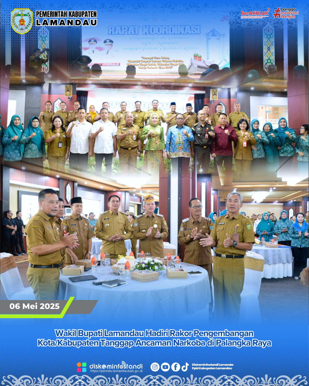 Palangka Raya – Wakil Bupati Lamandau Abdul Hamid, bersama Ketua TP PKK Kabupaten Lamandau, menghadiri Rapat Koordinasi Pengembangan dan Pembinaan Kota/Kabupaten Tanggap Ancaman Narkoba yang digelar di Aula Jayang Tingang, Kantor Gubernur Kalimantan Tengah, Selasa (6/5).