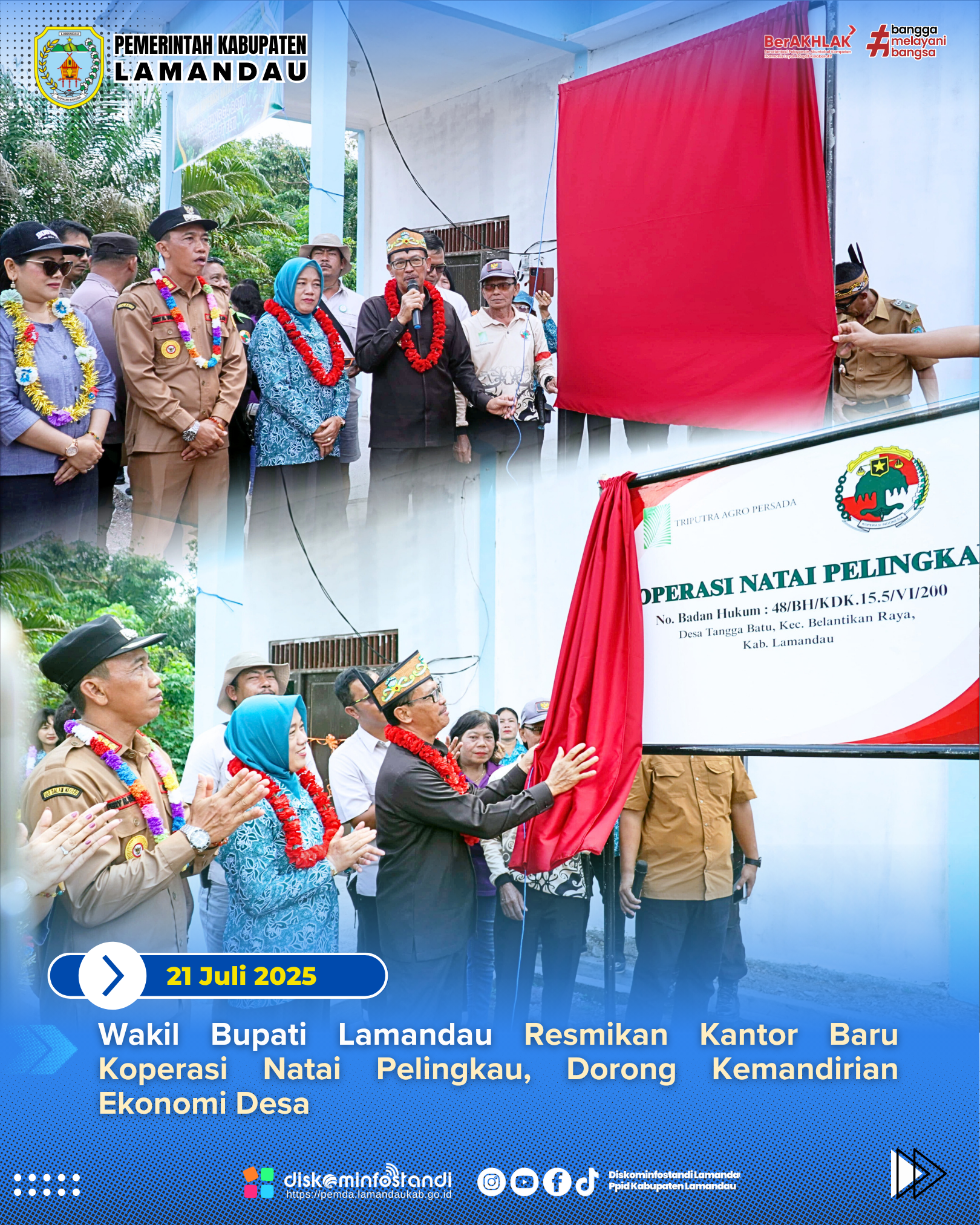 Wabup juga menyampaikan penghargaan atas inisiatif dan kerja keras seluruh pengurus dan anggota koperasi yang telah berhasil merealisasikan pembangunan kantor baru tersebut, menurutnya, keberhasilan ini merupakan contoh nyata dari semangat gotong royong yang menjadi ciri khas masyarakat Lamandau.