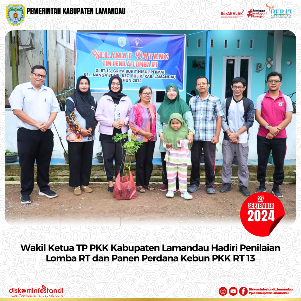 Nanga Bulik – Wakil Ketua TP PKK Kabupaten Lamandau, Endah Rahayuningsih menghadiri penilaian lomba RT se Kelurahan Nanga Bulik, Jumat (27/9/2024) di RT 13. Kegiatan ini juga dirangkai dengan panen perdana Kebun PKK RT 13.