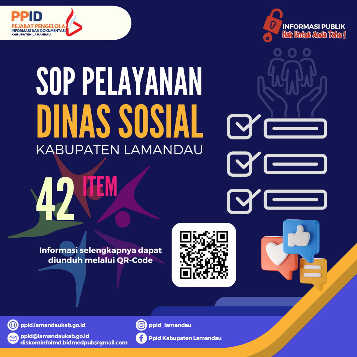 dengan pemenuhan kebutuhan dasar masyarakat. Peran Standar operasional pelayanan (SOP) penting dalam pengendalian pelaksanaan kegiatan pelayanan publik yaitu sebagai standarisasi langkah yang digunakan pegawai untuk menyelesaikan pekerjaan khusus, mengurangi kesalahan dan terjadinya kesalahan, berikut ada 42 item SOP Pelayanan Dinas Sosial Kabupaten Lamandau yang bisa diunduh melalui link : https://tinyurl.com/SOPPlynDinsos