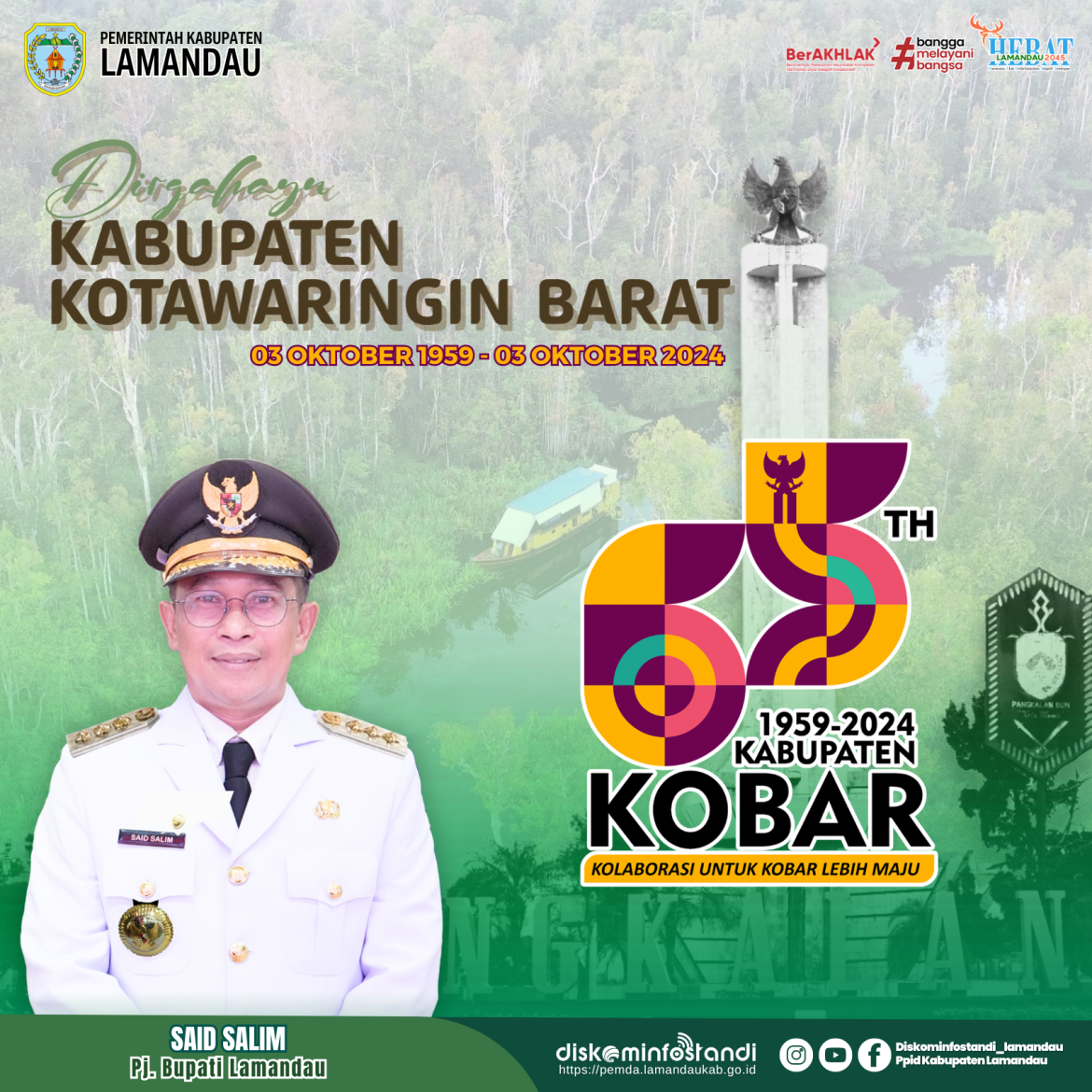 Pemerintah Kabupaten Lamandau mengucapkan Dirgahayu 65 tahun Kabupaten Kotawaringin Barat (03 Oktober 1959 – 03 Oktober 2024. “Kolaborasi untuk Kobar Lebih Maju”