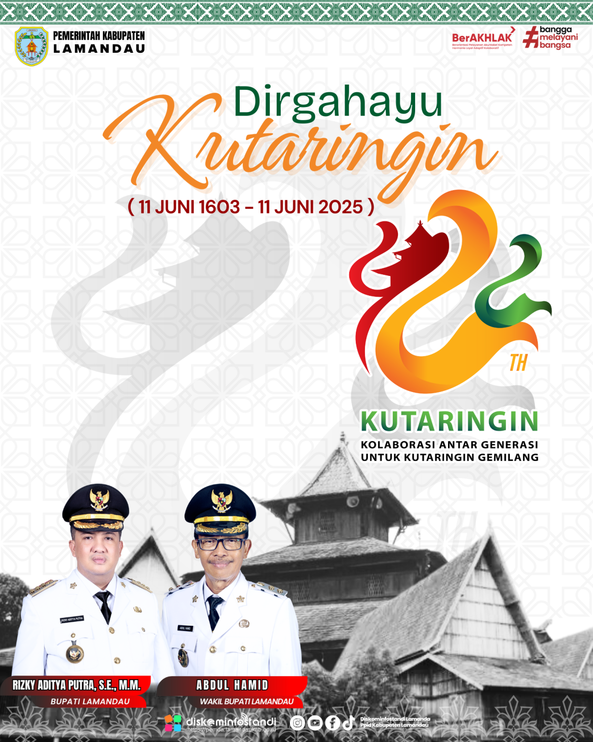 Pemerintah Kabupaten Lamandau mengucapkan Dirgahayu Kutaringin ke-442 Tahun (11 Juni 1603 – 11 Juni 2025) “Kolaborasi Antar Generasi Untuk Kutaringin Gemilang” (Diskominfostandi)
