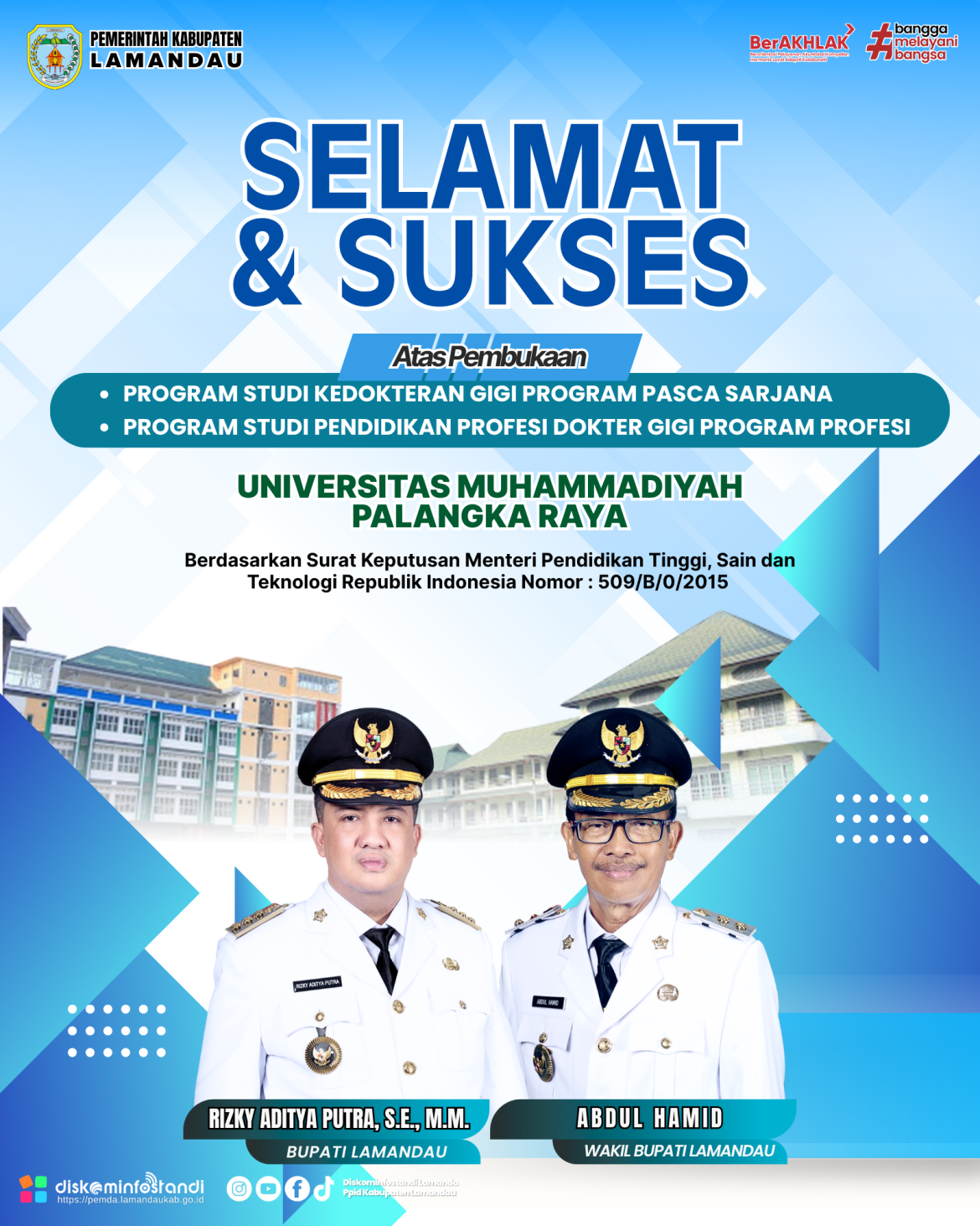 Pemerintah Kabupaten Lamandau mengucapkan Selamat dan Sukses atas dibukanya Program Studi Baru, ✔ Program Studi Kedokteran Gigi ✔ Program Sarjana dan Program Studi Pendidikan Profesi Dokter Gigi Program Profesi di Universitas Muhammadiyah Palangka Raya