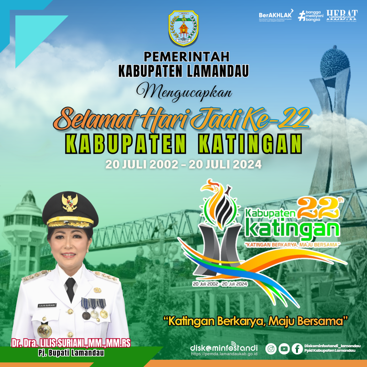 Pemerintah Kabupaten Lamandau mengucapkan Selamat Hari Jadi ke-22 KABUPATEN KATINGAN 20 Juli 2002 – 20 Juli 2024
