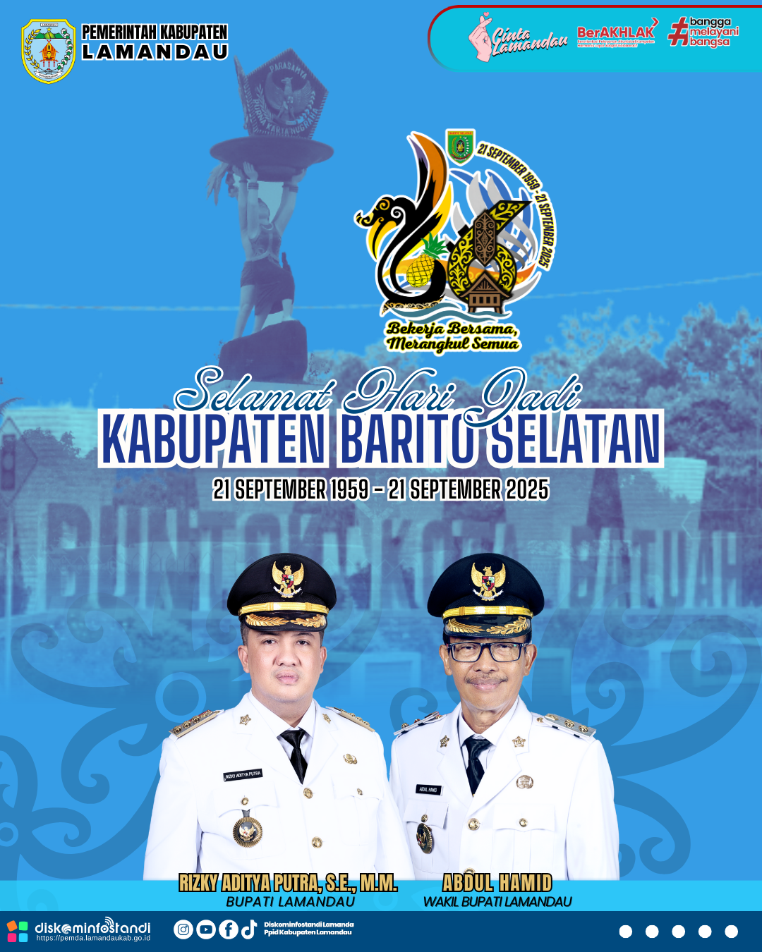 Pemerintah Kabupaten Lamandau mengucapkan Selamat Hari Jadi ke-66 Kabupaten Barito Selatan l 21 September 1959 – 21 September 2025 “Bekerja Bersama Merangkul Semua”