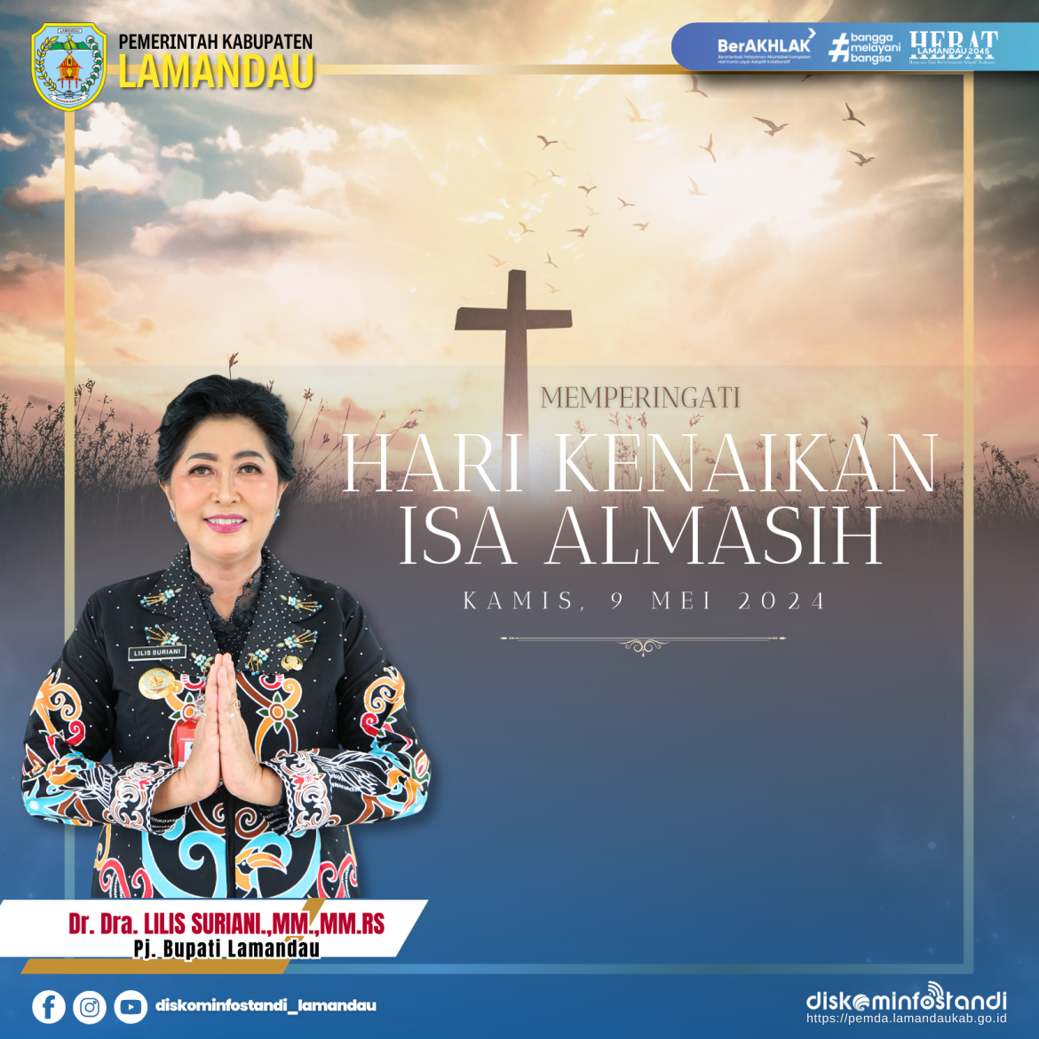 Pemerintah Kabupaten Lamandau mengucapkan selamat memperingati Hari Kenaikan Isa Almasih, semoga damai sejahtera senantiasa memenuhi hati kita. Amin…