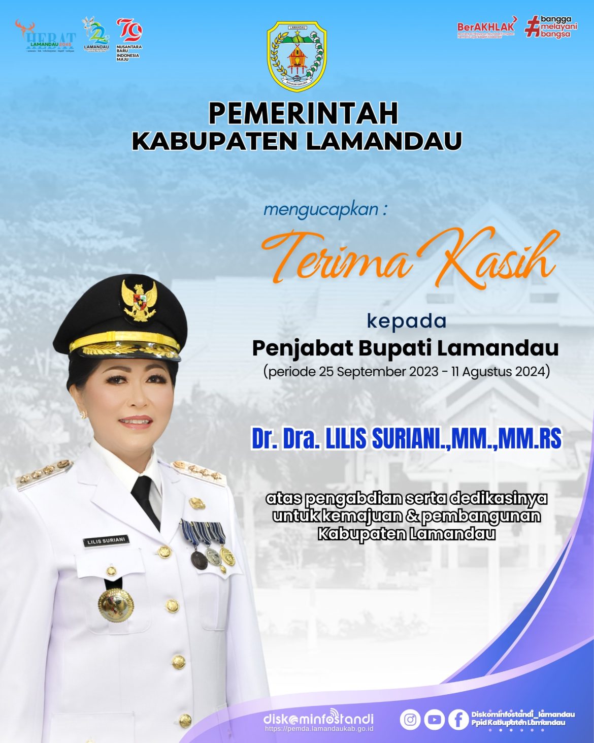 Pemerintah Kabupaten Lamandau mengucapkan Terima Kasih kepada Penjabat Bupati Lamandau (periode 25 September 2023 s.d 11 Agustus 2024).