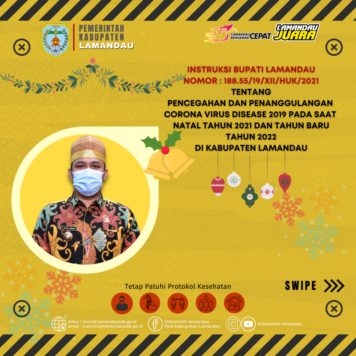 LBC – Instruksi Bupati Lamandau Nomor : 188.55/19/XII/HUK/2021 tentang Pencegahan dan Penanggulangan Corona Virus Disease 2019 pada saat Natal Tahun 2021 dan Tahun Baru Tahun 2022 di Kabuapten Lamandau.