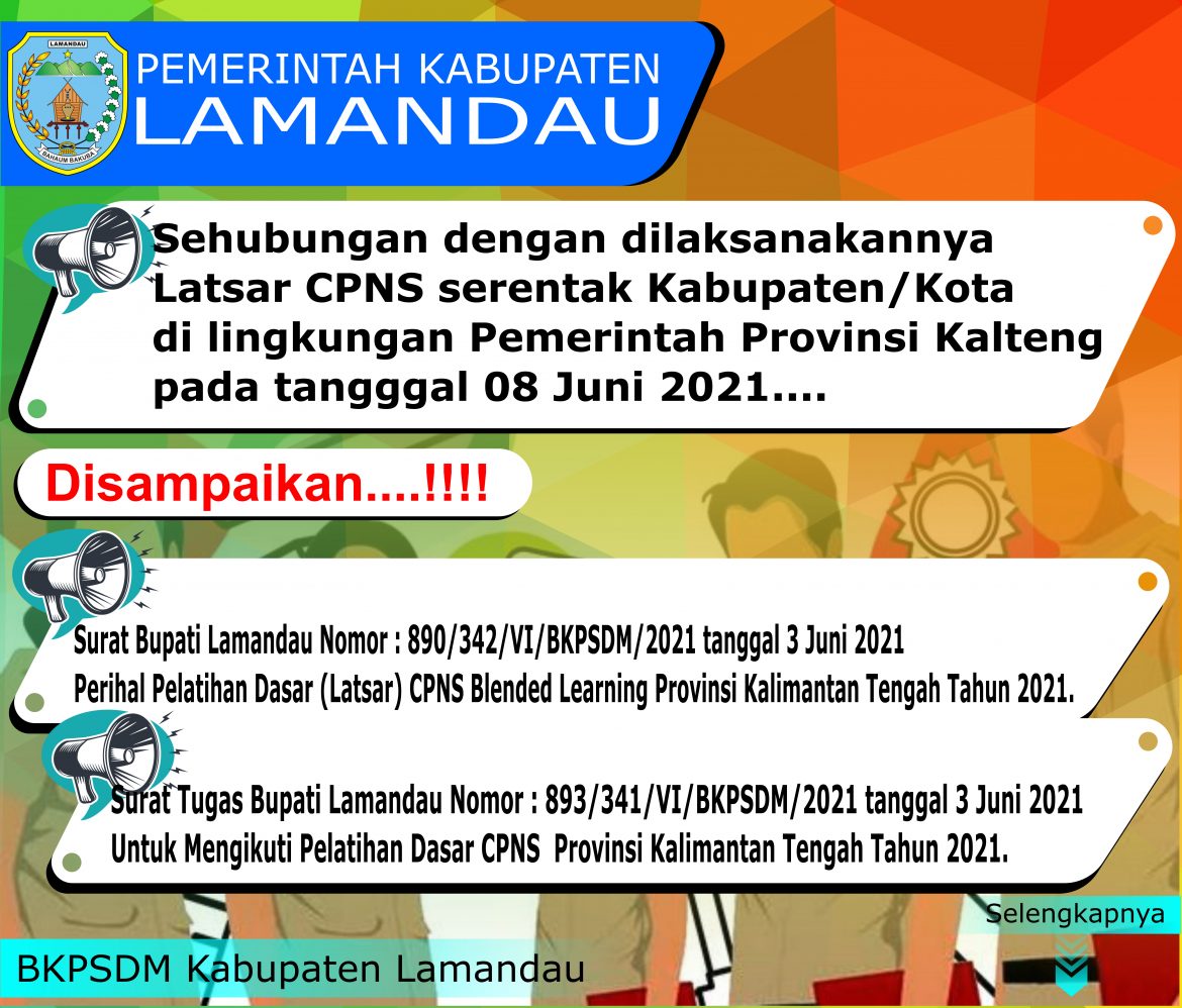 Lamandau – Diinformasikan bahwa Latsar serentak Kab/Kota di lingkungan Provinsi Kalteng akan dilaksanakan pada tanggal 08 Juni 2021 dengan tahapan-tahapan jadwal yang telah ditetapkan oleh BPSDM Provinsi Kalteng, termasuk untuk di lingkungan Pemerintah Kabupaten Lamandau. Untuk itu dimohon masing-masing Peserta menyiapkan diri untuk mengikuti tahapan pembelajaran MOOC yang dimulai pada tanggal 08 Juni 2021 secara mandiri (self learning) melalui aplikasi/sistem yang ditetapkan oleh LAN RI.