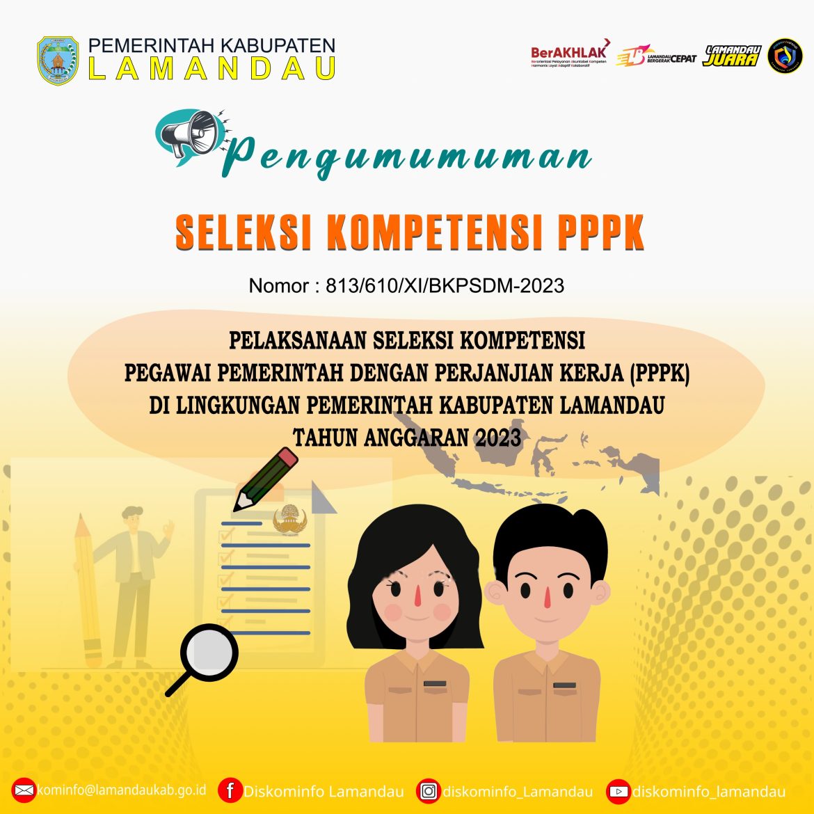 Lamandau – Surat Panitia Seleksi Instansi Kabupaten Lamandau, Nomor : 813/610/XI/BKPSDM-2023 tanggal 07 November 2023 tentang Pelaksanaan Seleksi Kompetensi Pegawai Pemerintah dengan Perjanjian Kerja (PPPK) di Lingkungan Pemerintah Kabupaten Lamandau Tahun Anggaran 2023. Adapun hal-hal yang disampaikan terkait pengumuman tersebut dapat didownload DISINI. Demikian disampaikan terimakasih
