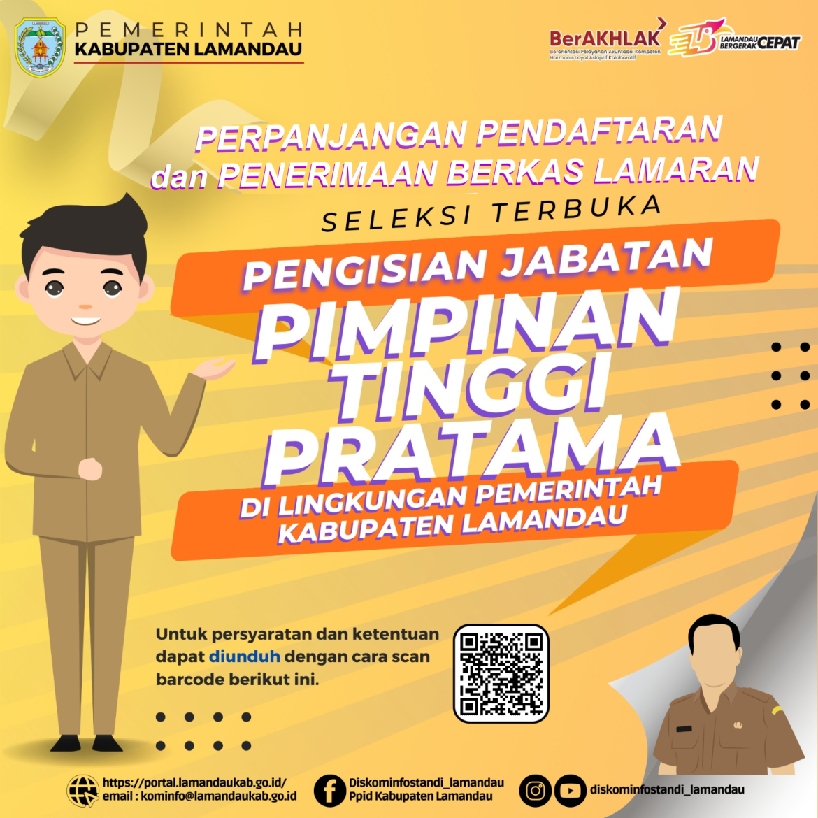 Lamandau/LBC – Disampaikan Surat Ketua Panitia Seleksi Jabatan Pimpinan Tinggi Pratama Secara Terbuka di Lingkungan Pemerintah Kabupaten Lamandau, Nomor : 05/JPTP/II/2023 tanggal 23 Februari 2023 tentang Perpanjangan Pendaftaran dan Penerimaan Berkas Lamaran Seleksi Terbuka Pengisian Jabatan Pimpinan Tinggi Pratama di Lingkungan Pemerintah Kabupaten Lamandau. Adapun hal-hal yang disampaikan terkait pengumuman tersebut dapat diunduh DISINI.