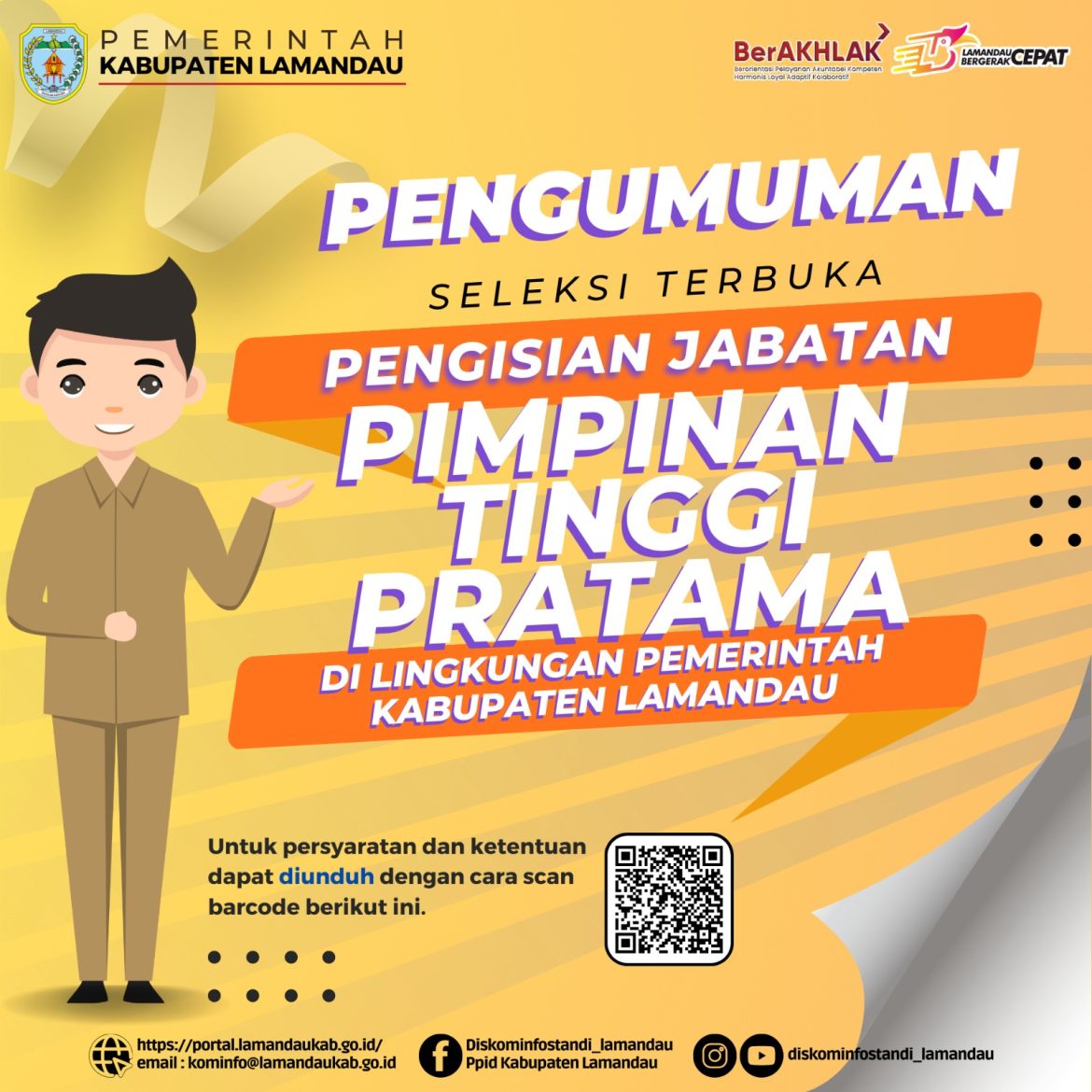 Lamandau/LBC – Disampaikan Surat Ketua Seleksi Jabatan Pimpinan Tinggi Pratama Secara Terbuka di Lingkungan Pemerintah Kabupaten Lamandau, Nomor : 02/JPTP/I/2023 tanggal 24 Januari 2023 tentang Seleksi Terbuka Pengisian Jabatan Pimpinan Tinggi Pratama di Lingkungan Pemerintah Kabupaten Lamandau. Adapun hal-hal yang disampaikan terkait pengumuman tersebut dapat dilihat DISNI serta LAMPIRANNYA. Demikian disampaikan terimakasih.